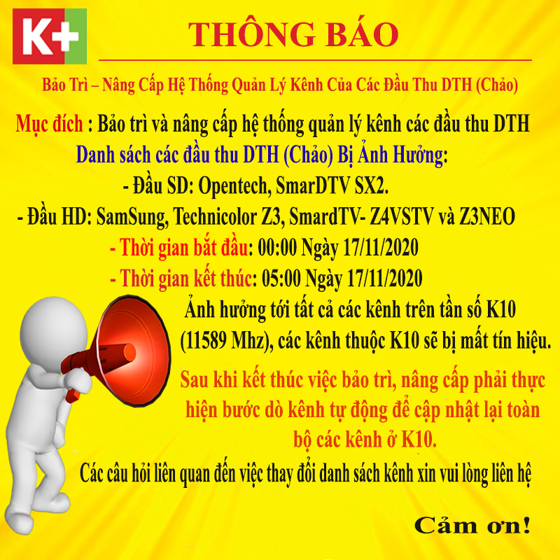 Thông Báo Bảo Trì – Nâng Cấp Hệ Thống Quản Lý Kênh Của Các Đầu Thu DTH Post by thkplusvn247 On 11/11/2020 0 comment Thông Báo Bảo Trì – Nâng Cấp Hệ Thống Quản Lý Kênh Của Các Đầu Thu DTH (Chảo)